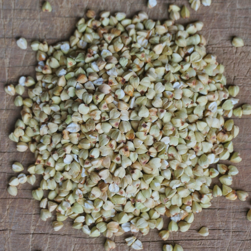 BUCKWHEAT GROATS: Unrelated to wheat, not a grass, and therefore not a grain, these gluten-free groats feed like a grain with the added boon of high protein content. The flavor is nutty and reminiscent of herbal tea.