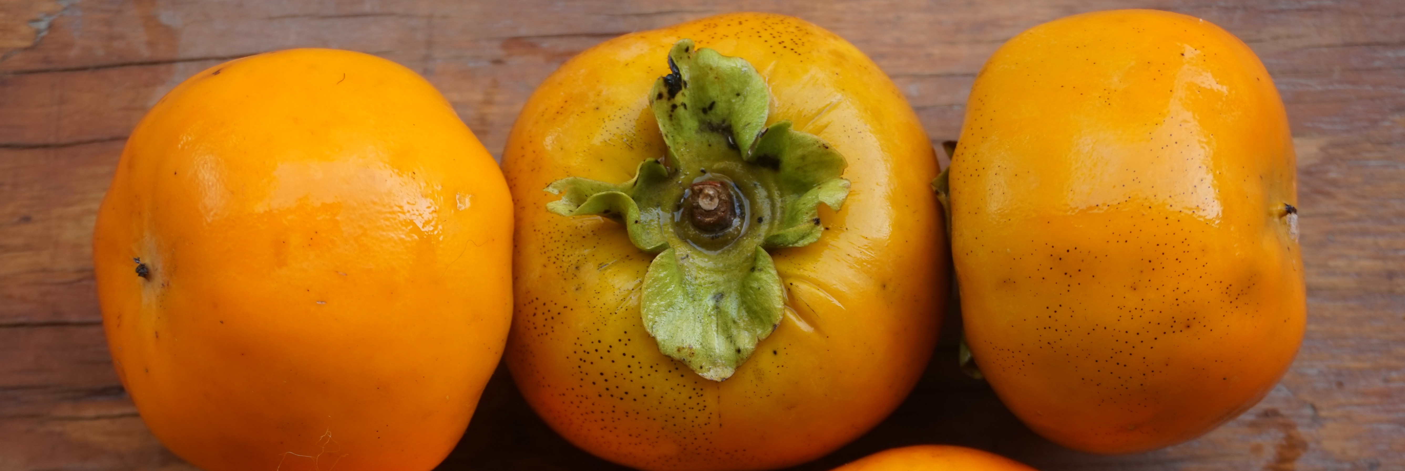We grow seedless, Asian persimmons, both astringent and non-astringent types. The various varieties of persimmons that we grow yield a season extension of this audacious fruit. Soft, gooey, and super sweet, this bright orange fall fruit makes the tree look like a post-halloween spectacle and an inaugural Christmas tree at the same time.