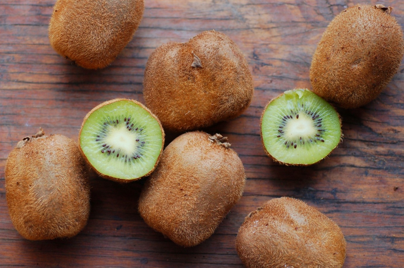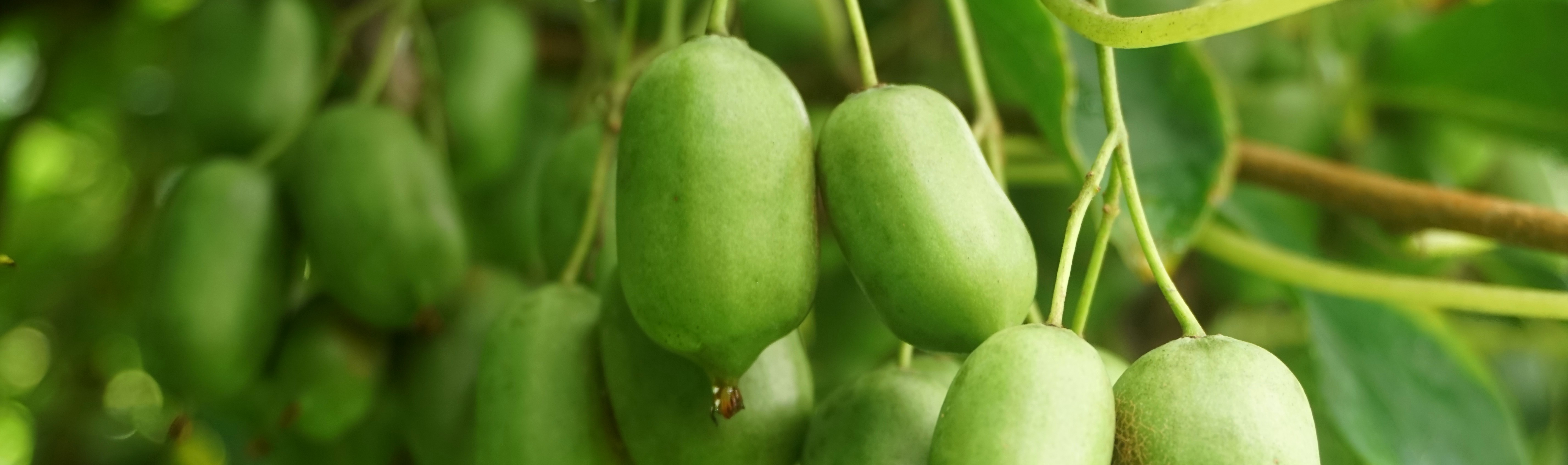 The fuzzy kiwi vine bears its fruit just long enough in our bioregion to produce sweet-ripening fruit off-vine. The fetching fuzzy kiwis are harvested just prior to the first forecasted freeze and made to ripen off-vine in a warm environment such as your kitchen counter. These delicious, acidic, sweet fruit, like the hardy grape kiwi, enrich you with loads of vitamin C in preparation for winter.